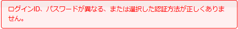 ▼「ログインID、パスワードが異なる、または選択した認証方法が正しくありません。」と表示されます。